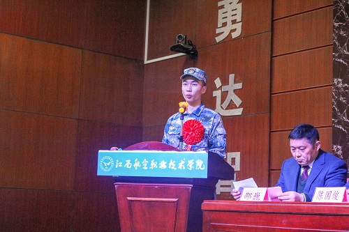 飞行器数字化制造技术专业士官生陈嘉政代表全体定向培养士官生表达入伍决心,杨子杰父亲代表家长发表欢送感言,由衷感谢学校精心教育培养,激励全体定向培养士官立大志,明大德,践行航空强国、航空报国的初心理念,争做新时代“四有”军人,为母校再创辉煌!