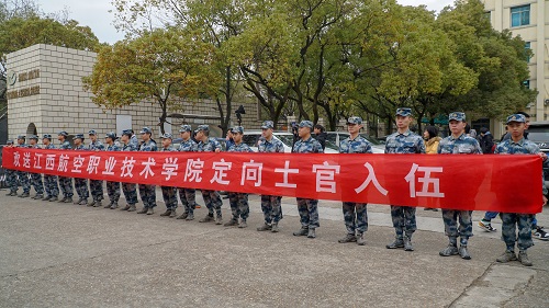 12月27日8时30分,江西航空职业技术学院隆重举行2019级海军定向培养士官入伍欢送大会。海军航空大学青岛校区接兵干部,江西航空职业技术学院校长宋利康、副校长兼士官学院院长周延、党委副书记杨建辉、校长助理仇岳猛、部门负责人、定向培养士官家长代表杨子杰父亲出席会议,160名2019级海军定向培养士官、部分家长代表和教师代表参加欢送大会。
