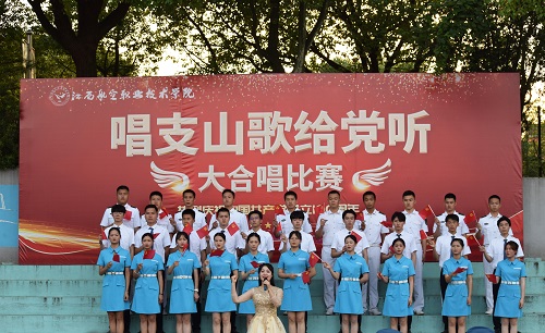 为庆祝中国共产党百年华诞,讴歌中国共产党的伟大成就,弘扬新时代主旋律,培养学生集体主义观念与团结奋进精神,展现全校师生积极向上的精神面貌。5月,学校党委下发通知,在全校范围举办“唱支山歌给党听”大合唱比赛。自活动开始以来,学校各二级学院广泛宣传发动,认真组织落实,充分调动学生的参与热情,克服各种困难,历时一个多月,组织编排了各具特色的合唱节目。6月16日下午,“唱支山歌给党听”大合唱决赛在昌南校区体育场隆重举行,此次决赛由党委主办、学生工作部负责、士官学院承办。校长宋利康、副校长周延、纪委书记杨建辉、校长助理仇岳猛、校长助理洪钰以及千余名师生代表共同参加。