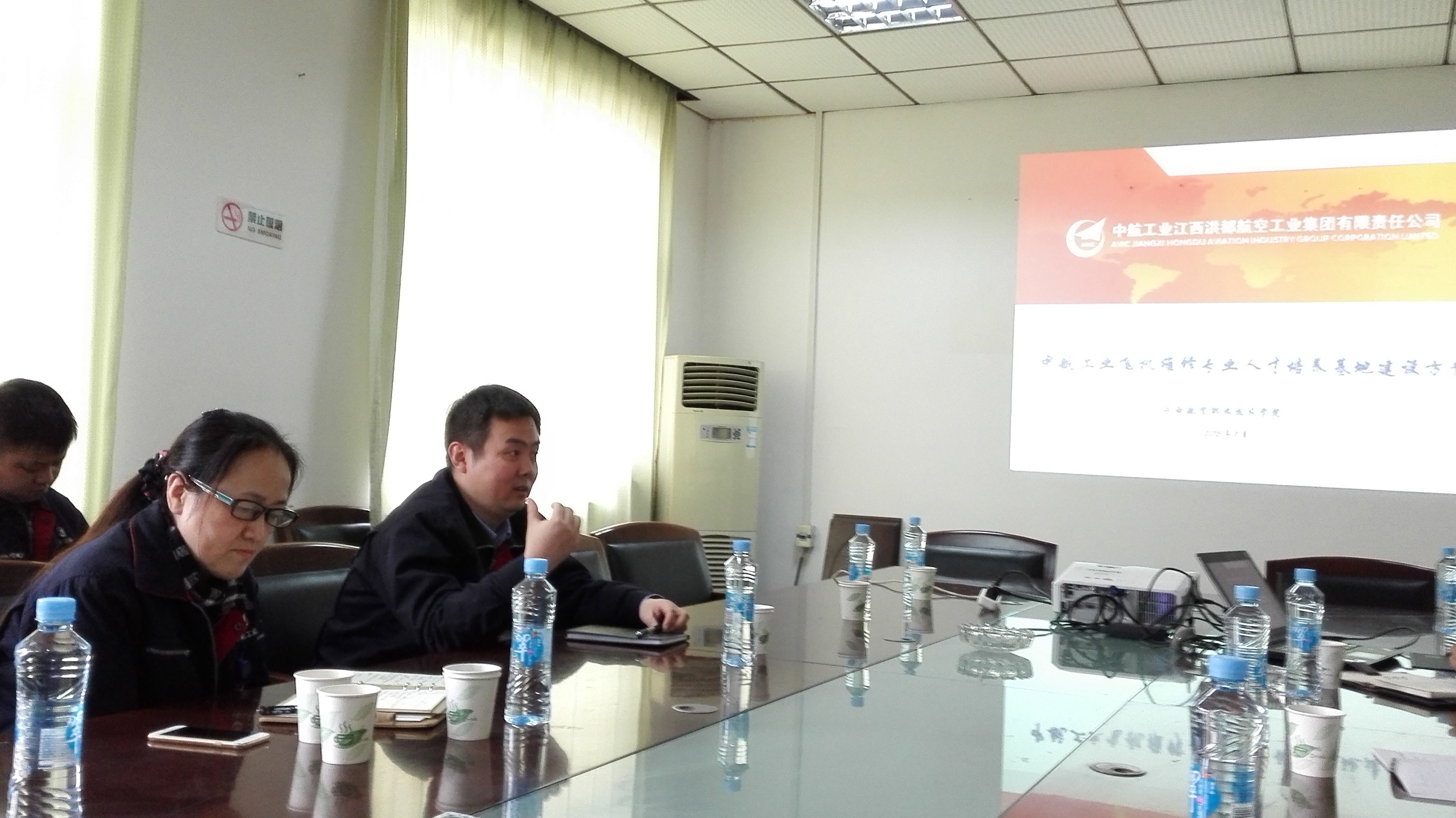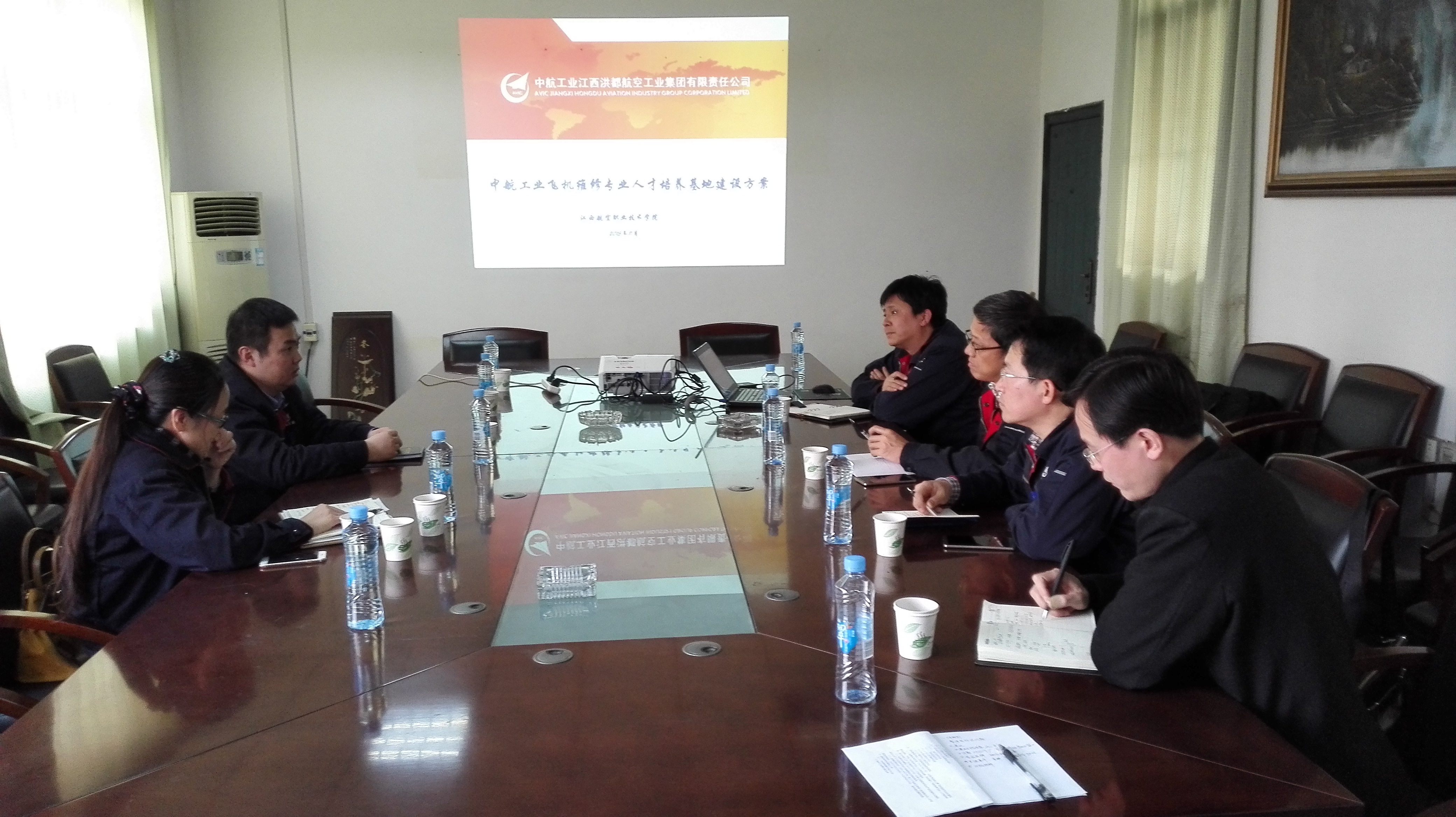 2015年12月1日下午,我院向中航工业洪都集团公司汇报飞机维修人才培养基地建设方案。