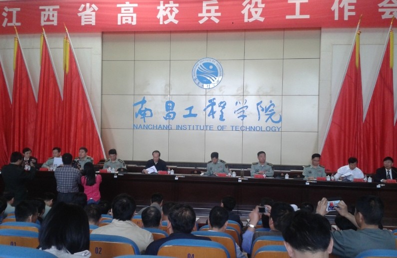 5月9日上午,在南昌工程学院体育馆、图书馆报告厅分别召开了江西省高校大学生征兵动员大会及江西省高校兵役工作会议。总参动员部田义祥副部长、张玉堂局长,省政府谭晓林秘书长,省教育厅郭奕珊副厅长,南京军区学生军训办崔本乐副主任,省军区陈平参谋长、政治部黄恩华副主任,南昌警备区夏一军政委,江西省各高校业务领导代表,全省各高校代表及省、市、县(区)征兵办公室和学生共4000余人参加动员大会。大会由省教育厅郭奕珊副厅长主持。省征兵领导小组副组长、省军区陈平参谋长在大会中讲话。他指出,高等学校在校学生积极应征入伍服兵役,是推进国防和军队现代化建设的重要举措,是我们每个公民应尽的光荣义务,也是有志青年报效祖国的有效途径。同时,他希望广大同学关注国际局势,关心祖国政治和军事形势,了解征兵政策,牢固树立保卫祖国、抵抗侵略的职责意识。