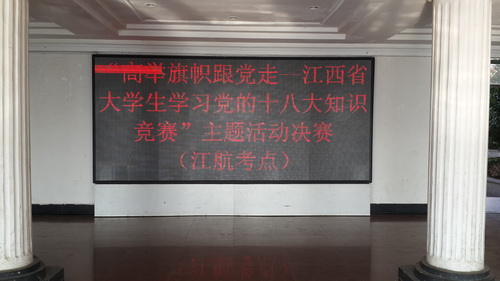 11月9日上午,我院“高举旗帜更党走――江西省大学生学习党的十八大知识竞赛”决赛在昌南校区多媒体教室举行,共有50名同学参加了本次决赛。本次比赛由省教育工委、教育厅主办,广泛开展大学生学习党的十八大知识竞赛活动,是高校开展学习贯彻十八大精神的一种好形式,也是加强大学生思想政治教育的有效途径。学院高度重视本次比赛,旨在通过知识竞赛的形式引导广大青年学生深入学习和领会党的十八大精神,切实增强大学生理论学习的使命感和紧迫感,相关部门也多次组织学生通过各种方式进行学习,通过深入学习贯彻党的十八大精神,强化学校思想政治教育,推动教育科学发展。