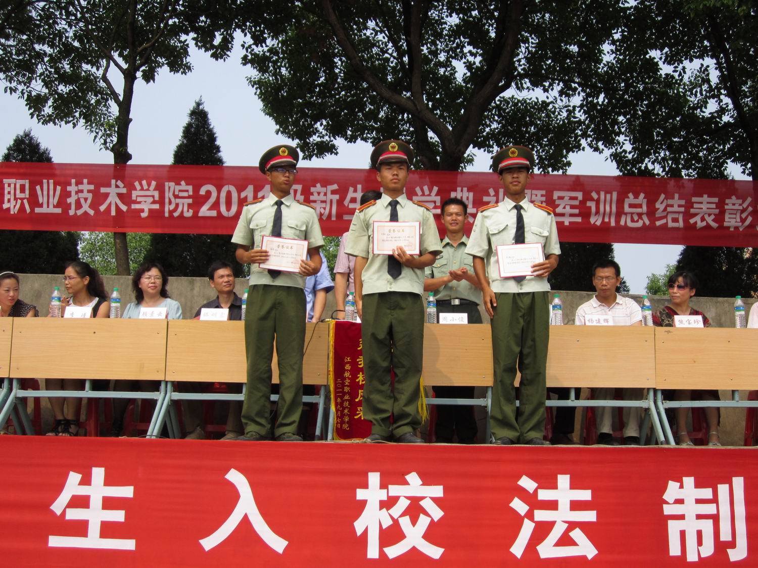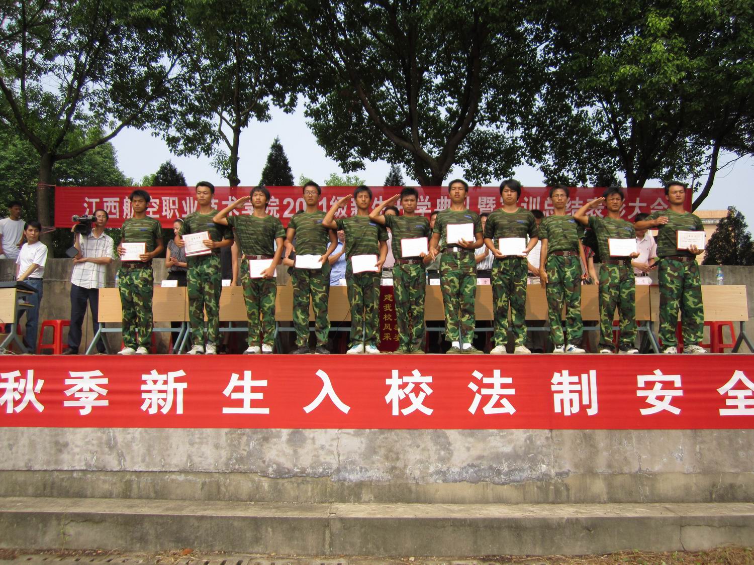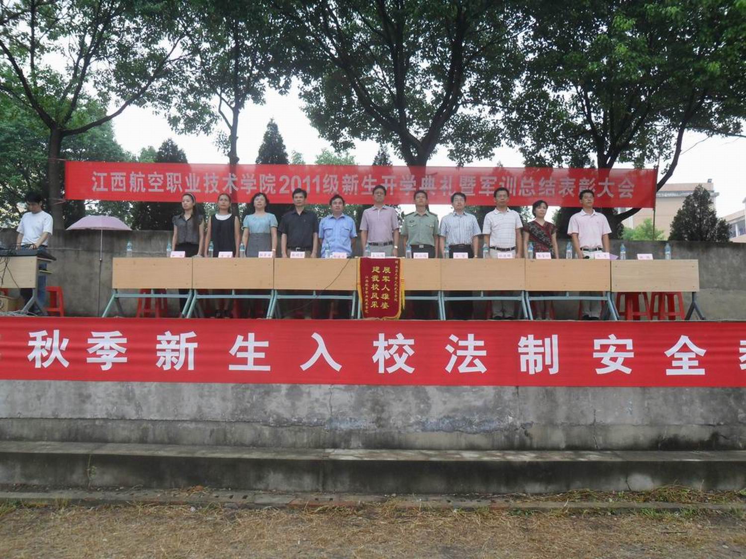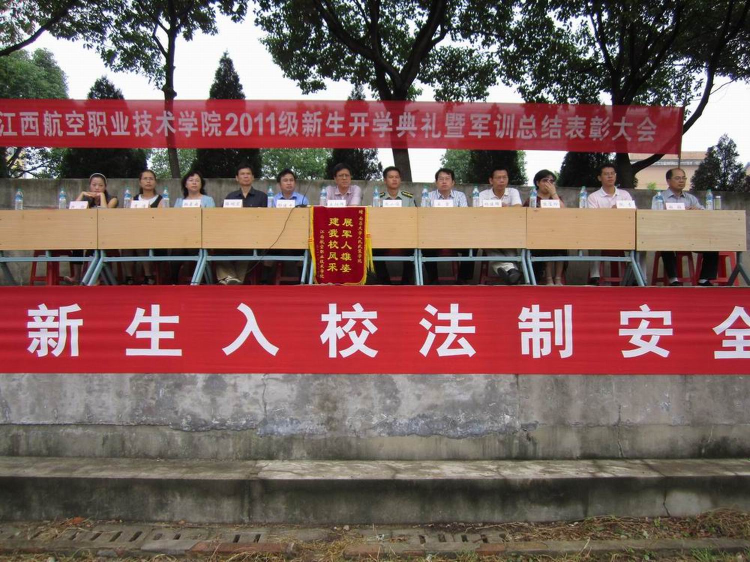 2011年9月7日上午9点,820多名11级新生身着戎装,排着整齐的队伍站立在学院操场上,接受院领导的检阅,伴随着庄严的国歌声,我院2011级新生开学典礼暨军训总结表彰大会在学院操场拉开帷幕。大会由学工处阮青处长主持。出席此次军训总结大会的有我院王阳辉院长、院党委书记彭建平、周小俊中队长、副院长杨建辉、副院长滕明宏、副院长熊宝珍等学院领导、老师代表、承训部队领导。会上党委彭建平书记发表了热情洋溢的讲话。并由王阳辉院长代表学院向承训部队赠送了锦旗。大会开始前,王阳辉院长检阅了受训学生,在王阳辉院长走到排列整齐的受阅队伍前向同学们问好致意时,整齐响亮的“首长好”、“为院争光”响彻全场。在分列式中,各连组成的方队迈着整齐的步伐通过了主席台,接受领导的致意。表演方队的表演更是获得了领导们的阵阵掌声。此次军训总结大会上,周小俊中队长进行了军训工作总结,他认为,本次军训之所以能够圆满成功,主要得益于领导们的重视和关心,前期的充分准备、教官和同学们的努力以及灵活多样的训练方法。在开学典礼上,教师代表赵颖副教授发言,对新生表示热烈的欢迎和衷心的祝贺,并对他们提出更高的期望,要有勇于实践,不断创新的开拓精神。会上共评选出优秀连队3个、优秀教官3名、军训优秀学员44名,并分别给予了表彰。至此,11级军训工作画上了圆满的句号。