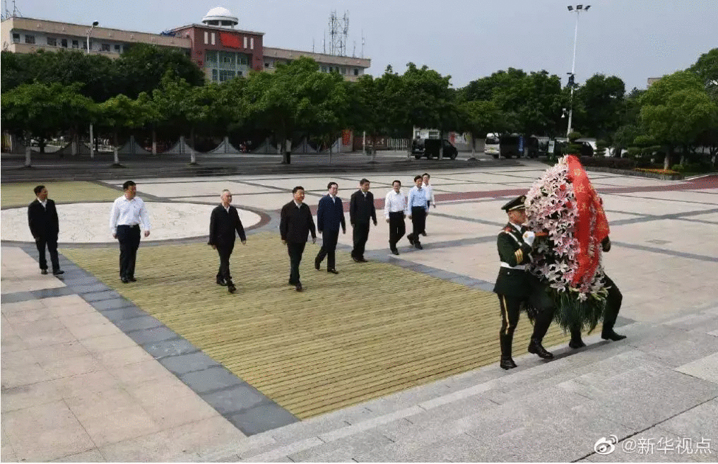 20日下午,习近平总书记来到中央红军长征集结出发地赣州市于都县,向中央红军长征出发纪念碑敬献花篮。