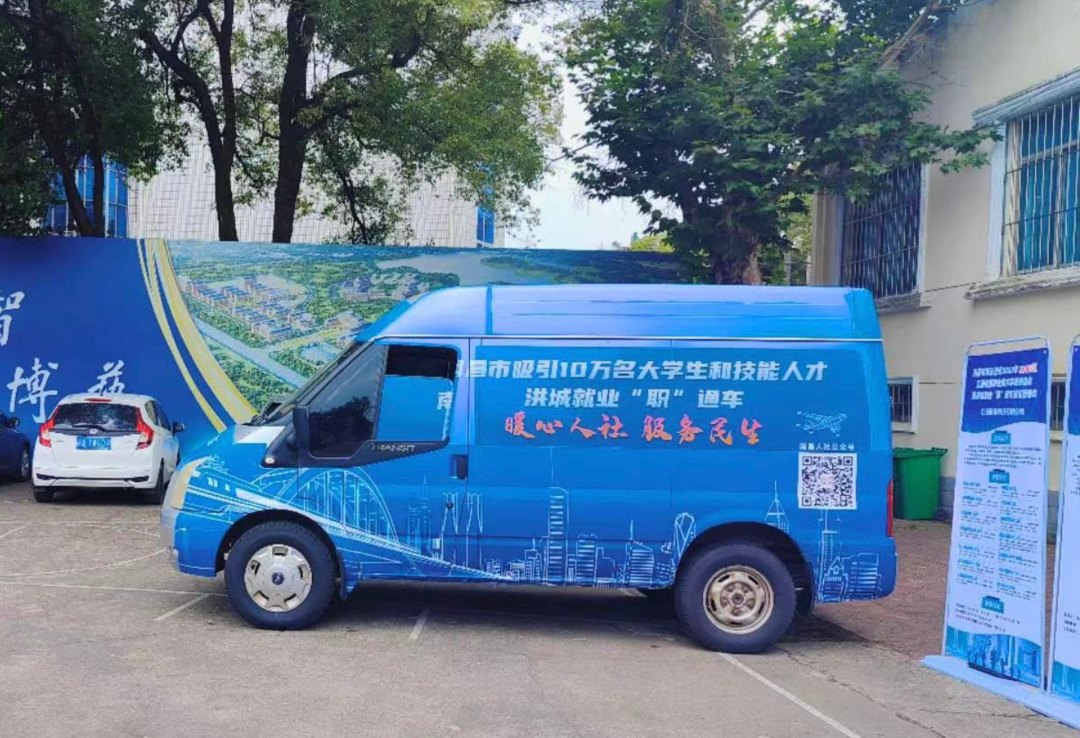 洪城就业“职”通车是南昌市人社部门为解决“毕业生就业难”“企业招工难”问题创新打造的公共就业服务新模式,坚持“快、便、实”原则,将就业服务融入大家的学习、生活间隙,最小程度占用求职者与企业时间,最大程度保障求职者就业、企业招用需求,做到“随时来、随时用、即刻走”。它集“政策宣传区、企业招聘信息展示区、简历诊断区、拍照打卡区、线上直播专区、城市品牌宣传”等功能为一体,为学生们带去了重点企业优质岗位、惠才助企政策以及现场咨询服务等。