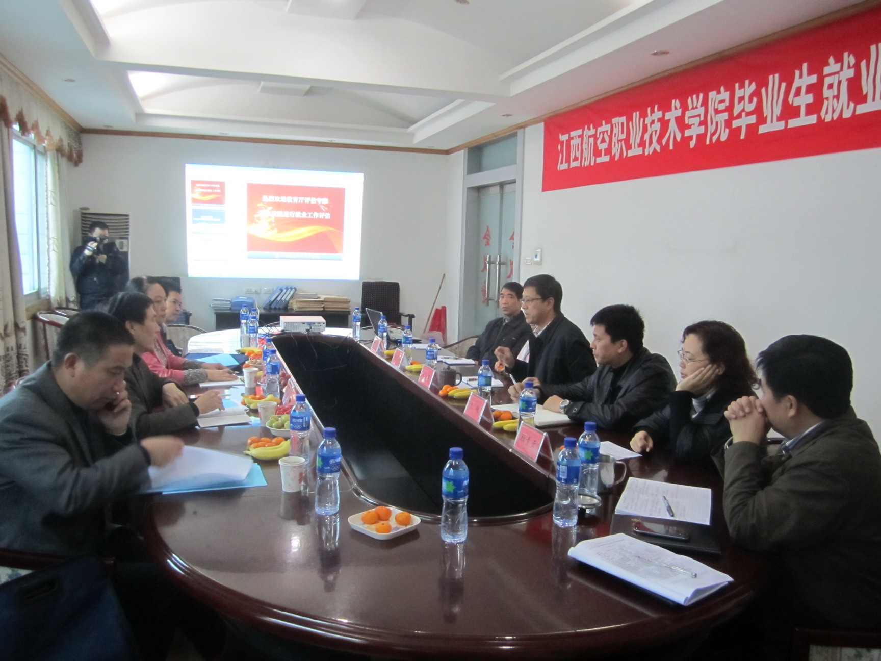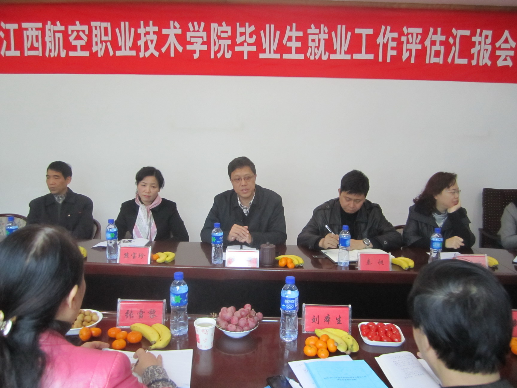 2012年11月28日上午,江西省教育厅就业评估专家组张雪黎、刘本生、侯贵平、平新兔一行四人,莅临江西航空职业技术学院检查评估就业工作,对学院2010~2012年度的毕业生就业工作进行了专项评估,院长王阳辉、党委书记秦昶、就业副院长熊宝珍、教学实训副院长顾素云,招就处及教务、学工、实训处等部门负责人参加了汇报会。